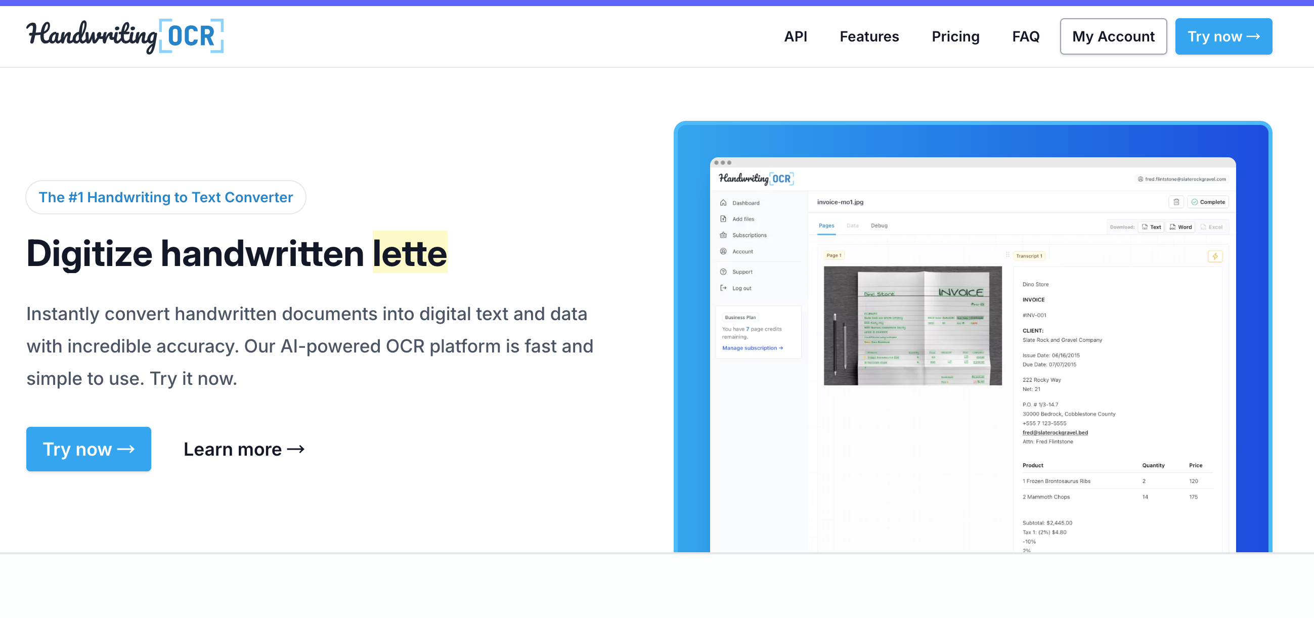 Overview: A web and API-based OCR service aimed at both individuals and enterprises, offering advanced handwriting recognition for digital conversion.